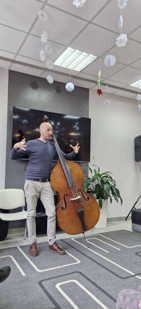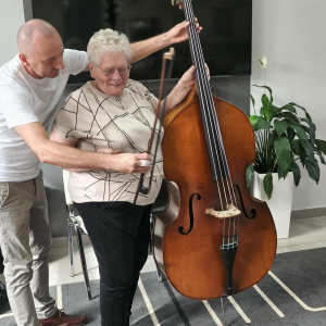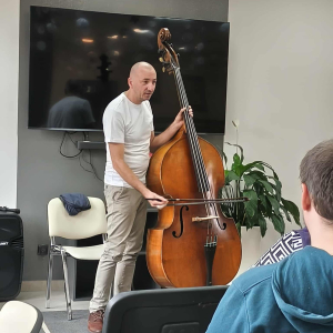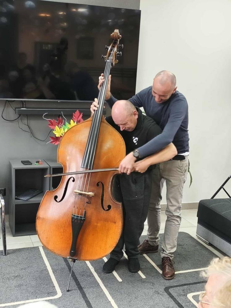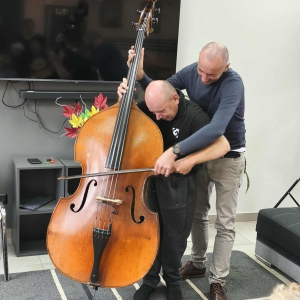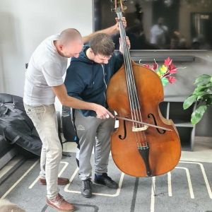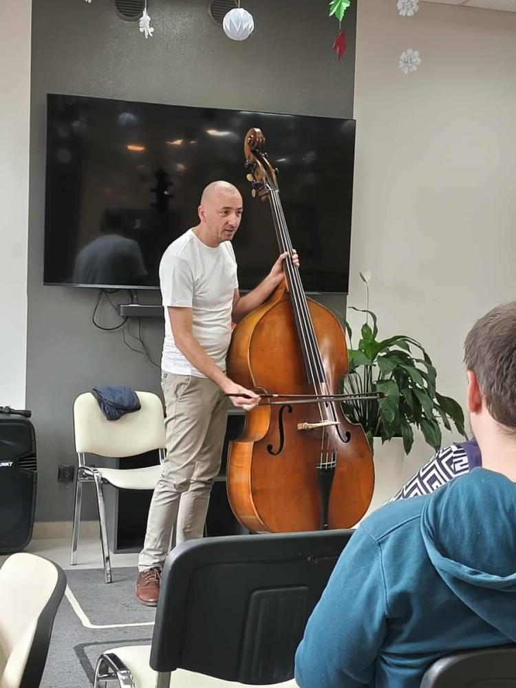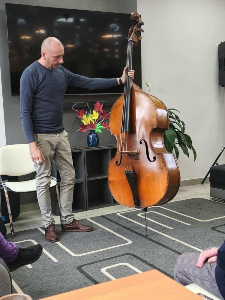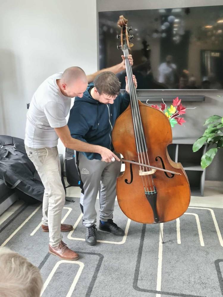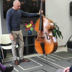 Pan Marcin opowiedział nam o instrumencie, na którym gra od przeszło 30 lat - kontrabasie. Wspólnie omówiliśmy budowę instrumentu, a także mnogość sposobów gry na nim. Pan Marcin zaprezentował nam grę klasyczną za pomocą smyczka oraz grę w stylu jazzowym "pizzicato" polegającą na szarpaniu strun palcami. Zaprezentował też możliwości pudła rezonansowego kontrabasu z którego wydobywał różnorodne dźwięki samym tylko pukaniem w instrument. W ramach oswojenia z instrumentem nasi Uczestnicy mogli spróbować gry na tym imponującym instrumencie. Zobaczcie sami. Serdecznie zapraszamy do zapoznania się z twórczością pana Marcina na jego kanale #audycjekontrabas