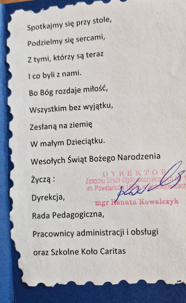 Społeczność Zespół Szkół Ogólnokształcących Nr 1 im. Powstańców 1863r. w Sędziejowicach zawsze o nas pamięta.