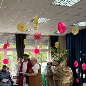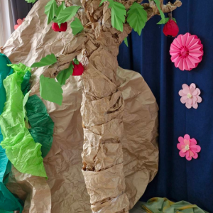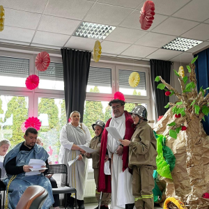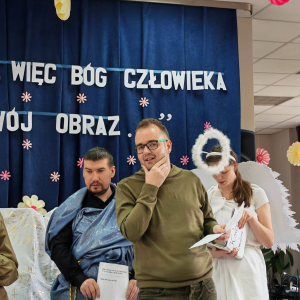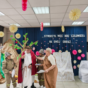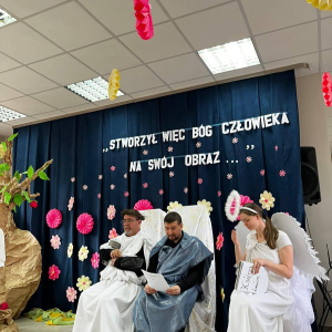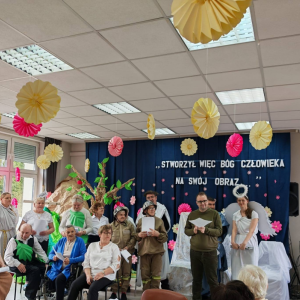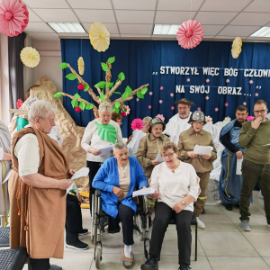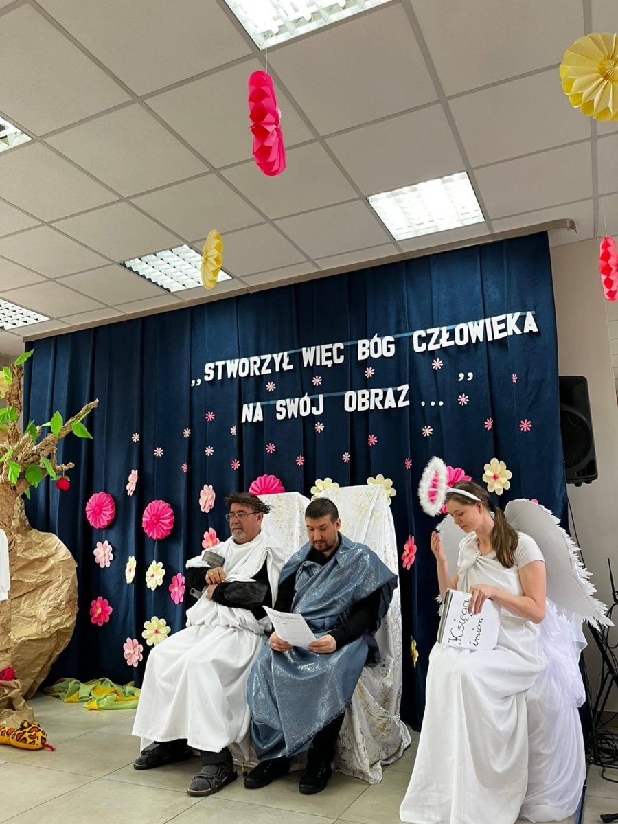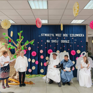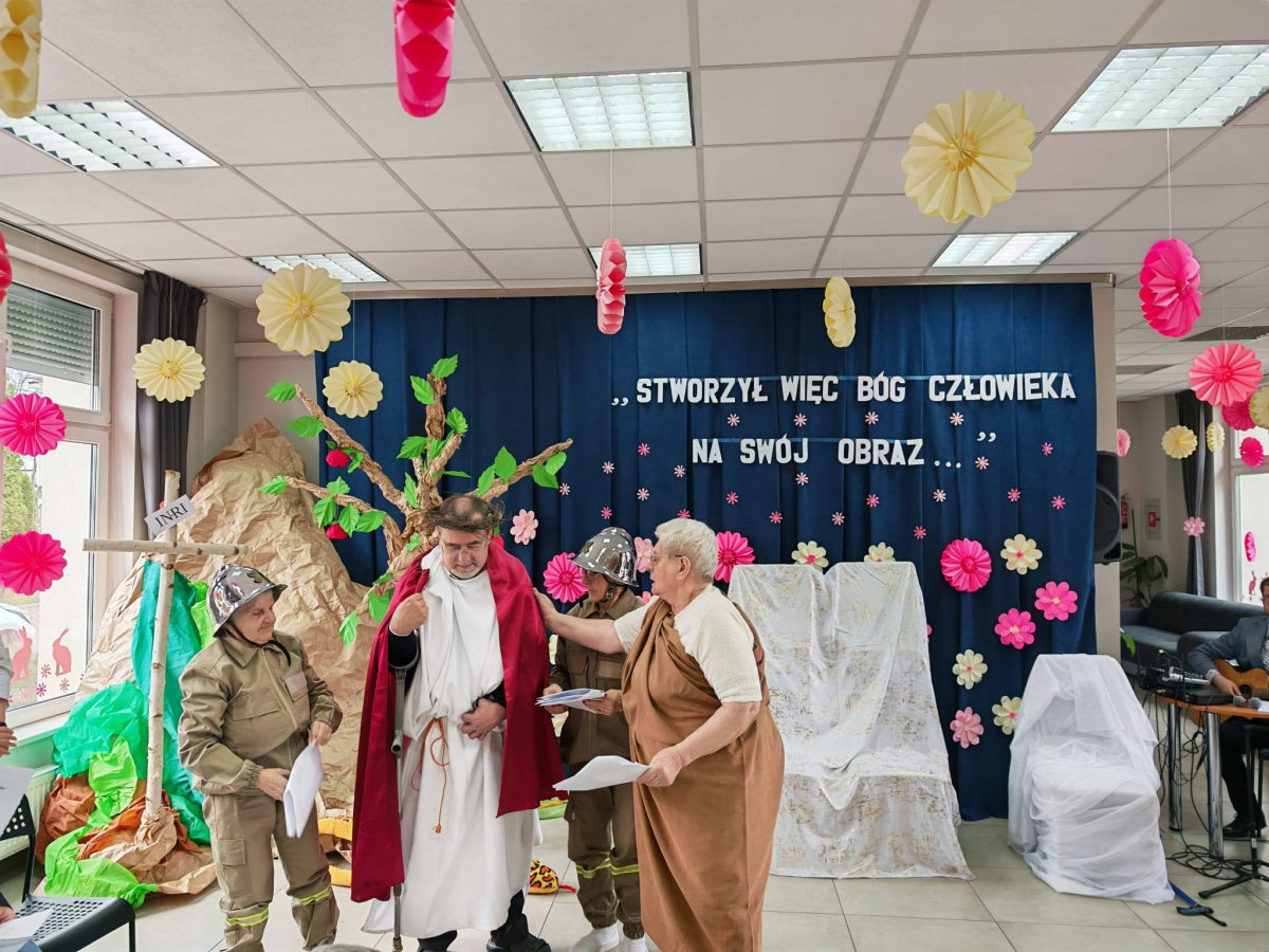 Spotkanie rozpoczął występ naszej grupy teatralnej "Motyle" pt. "Stworzył więc Bóg człowieka na swój obraz", nawiązujący do zbliżających się Świąt Wielkanocnych.