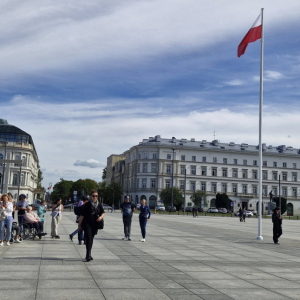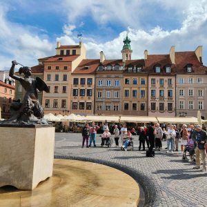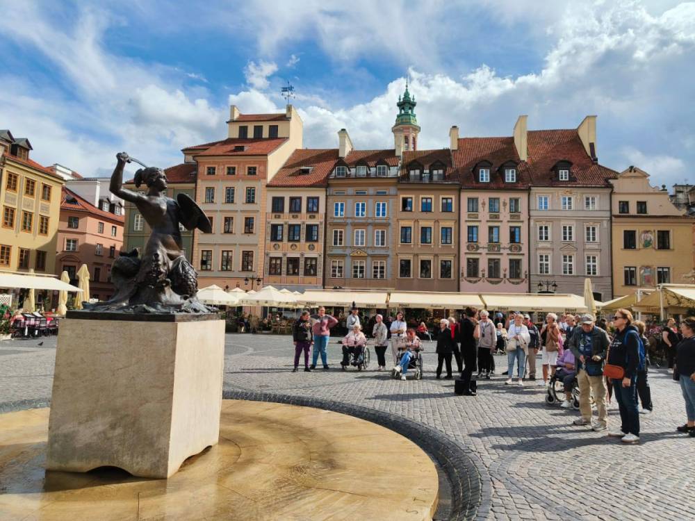 Dalszym etapem naszej wycieczki było zwiedzanie warszawskiej Starówki z pięknymi, kolorowymi, zabytkowymi kamienicami. Najbardziej urzekający był widok Rynku Starego Miasta, na którym znajduje się Pomnik Syrenki. Dodatkowej magii temu miejscu nadawał kataryniarz, który wygrywaną muzyką przeniósł nas Warszawy tamtych lat.