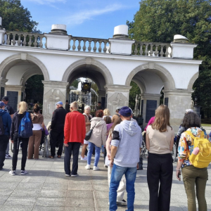 Pierwszym elementem naszej wycieczki było Muzeum Łazienek Królewskich, czyli letnia Rezydencji Króla Stanisława Augusta Poniatowskiego. Pobyt w Łazienkach zaczęliśmy od urokliwej fontanny, przy której znajduje się Pomnik Fryderyka Chopina. To właśnie tam odbywają się letnie koncerty plenerowe.