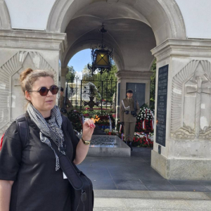Następnie udaliśmy się do Grobu Nieznanego Żołnierza, będącego pamiątką i hołdem żołnierzom poległym w czasie I wojny światowej we Francji. Tam poznaliśmy jego historię, a także z zainteresowaniem podglądaliśmy żołnierzy z Batalionu Reprezentacyjnego Wojska Polskiego, pełniących w tym czasie honorową wartę przed Grobem.